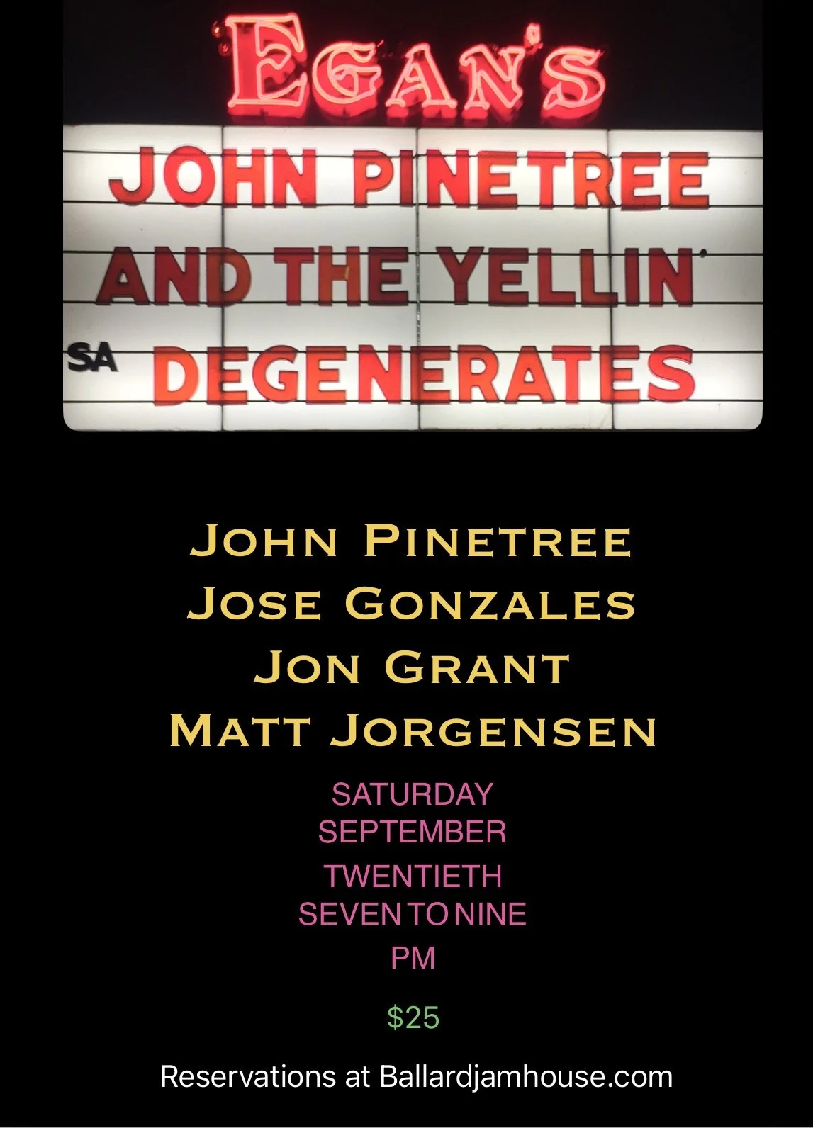 John Pinetree & The Yellin' Degenerates live from Egan's Saturday, September 20, 2025 7:00 PM 9:00 PM Google Calendar ICS