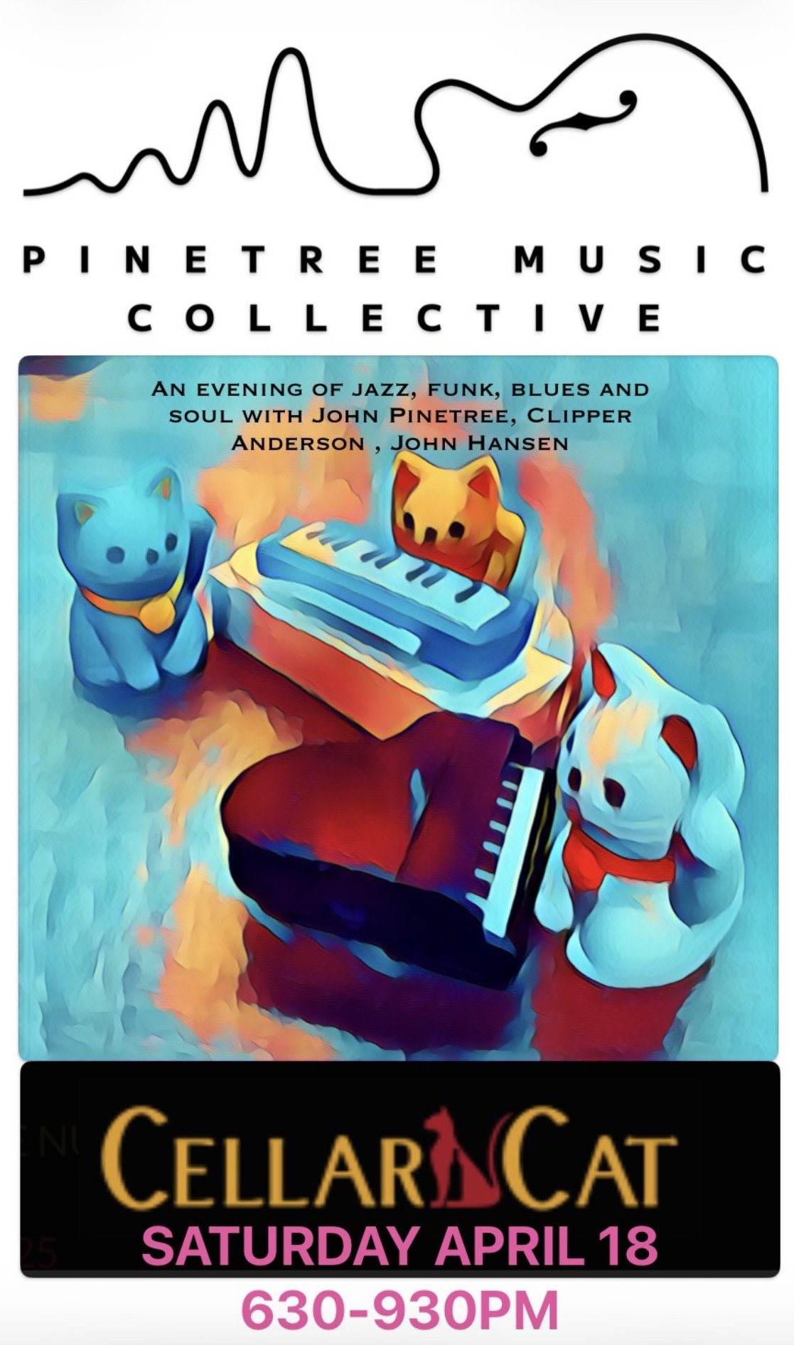 PINETREE MUSIC COLLECTIVE live AT THE CELLAR CAT KINGSTON Saturday, April 18, 2026 6:30 PM 9:30 PM Google Calendar ICS